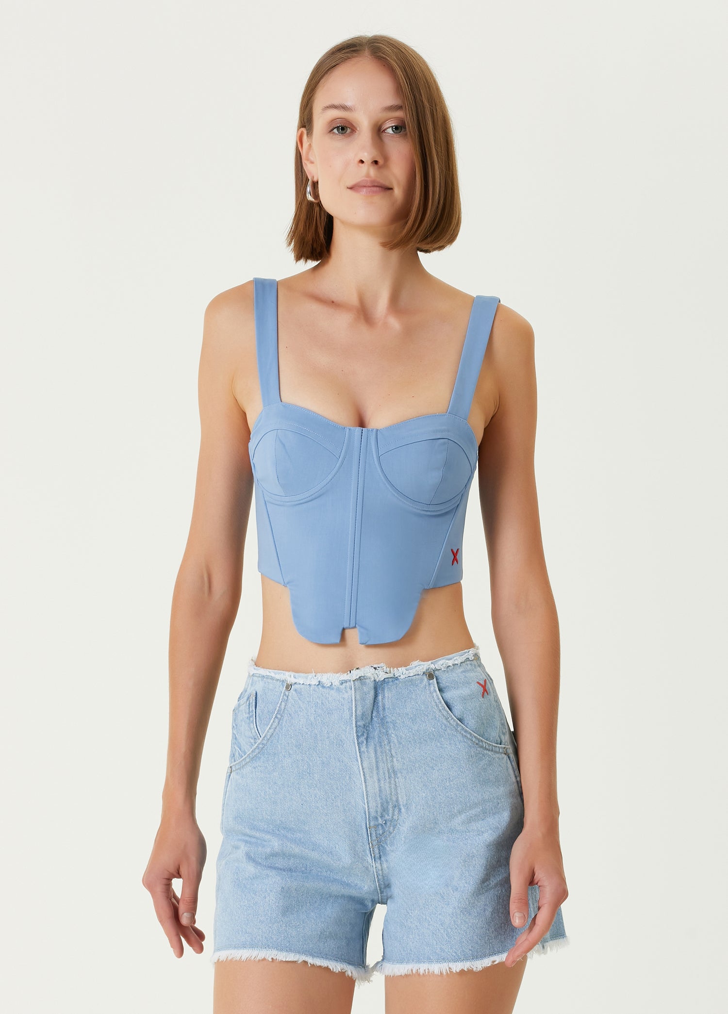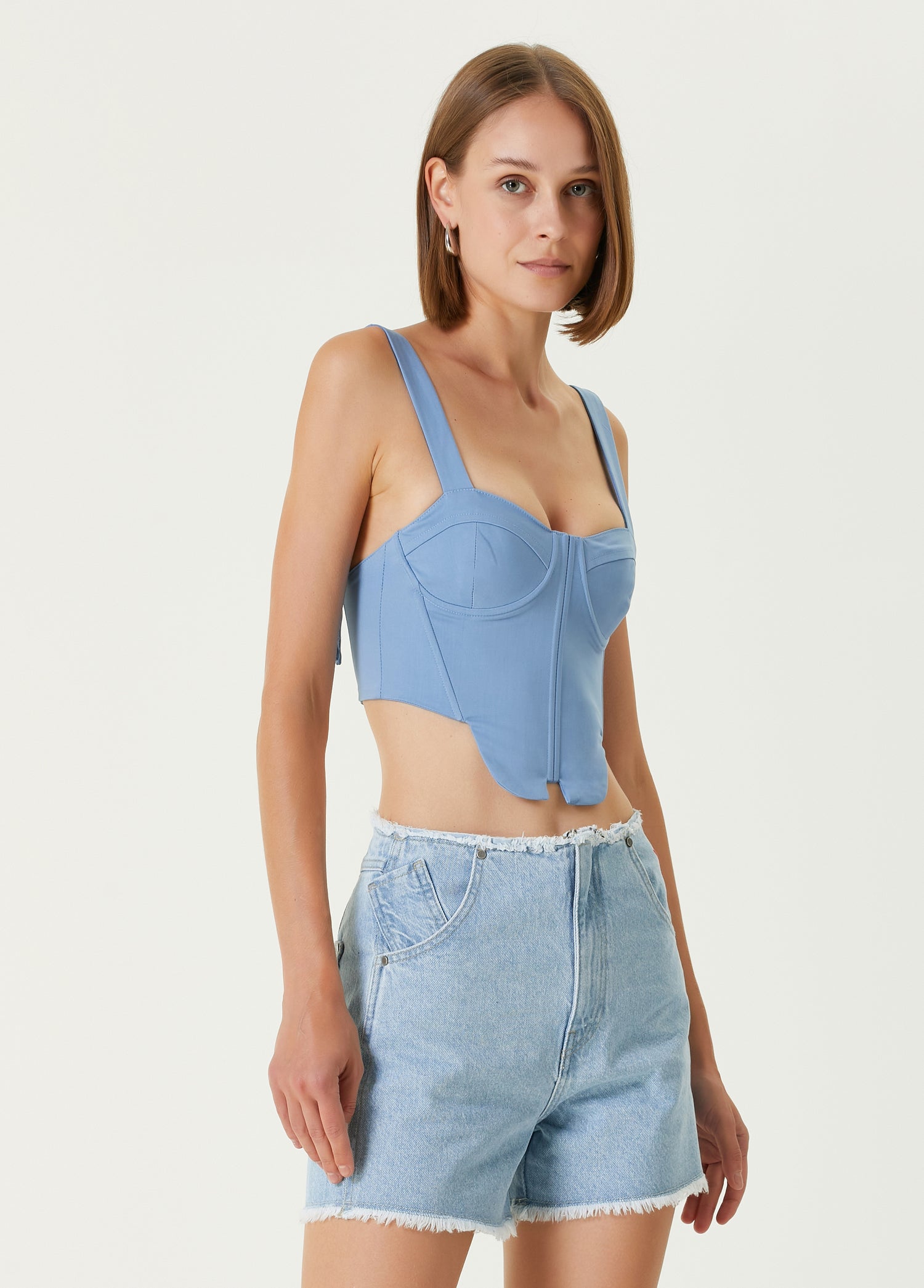 Cotton Woven Corset Top - Baby Blue