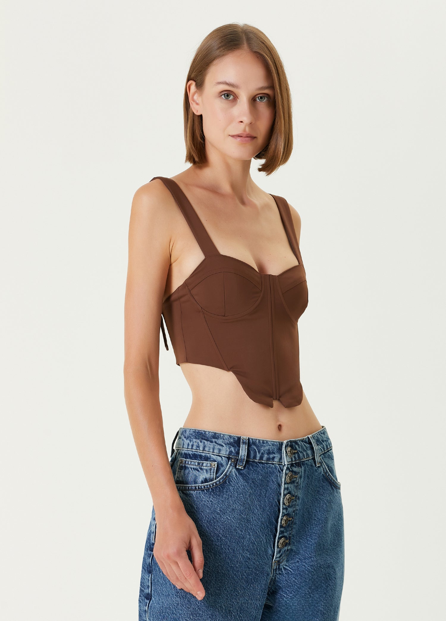 Cotton Woven Corset Top - Brown