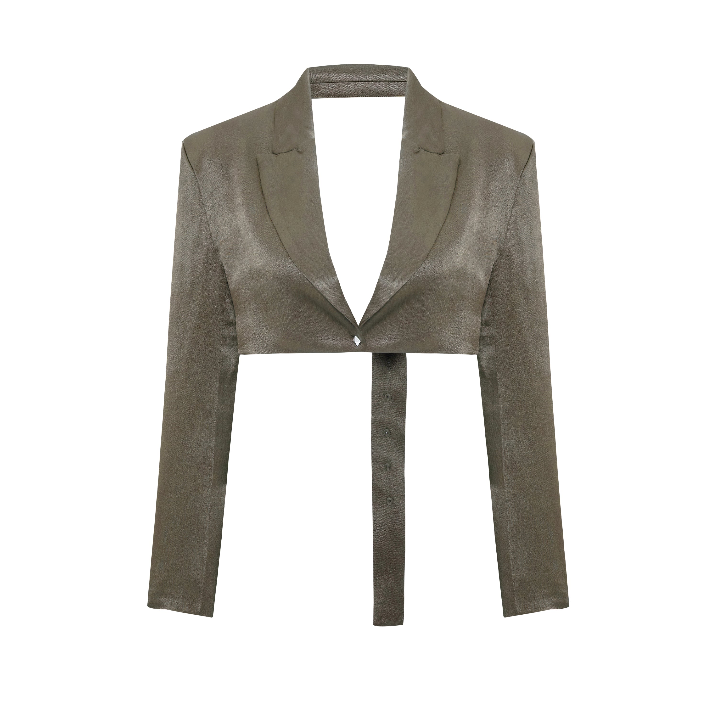 LINEN BLEND CROP SHINY WOVEN JACKET - MOON ROCK
