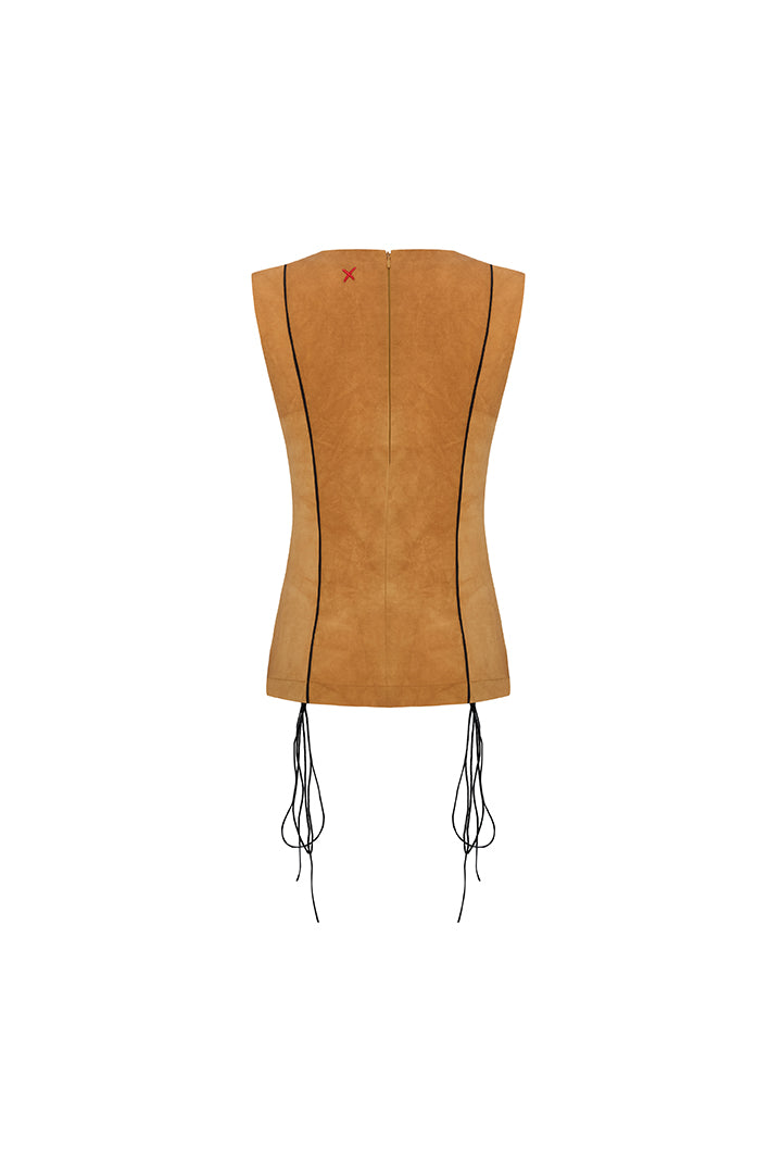 This fitted top offers an elegant silhouette with a stylish drawstring detail that cinches the waist. The vibrant orange wash gives the fabric a modern and striking sun-tanned look. Crafted from high-quality material, the design combines elegance with a bold and contemporary attitude, making it a perfect choice for both everyday outfits and more formal occasions.