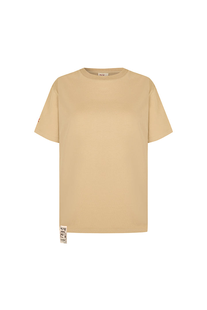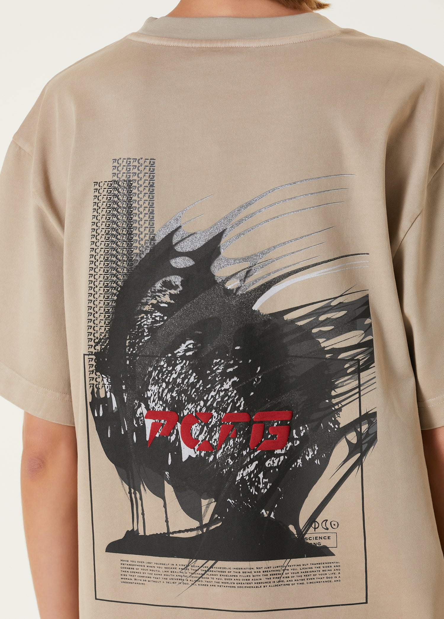PADDED, PAINTED T-SHIRT WITH PRINTED BACK AND LABEL DETAIL.