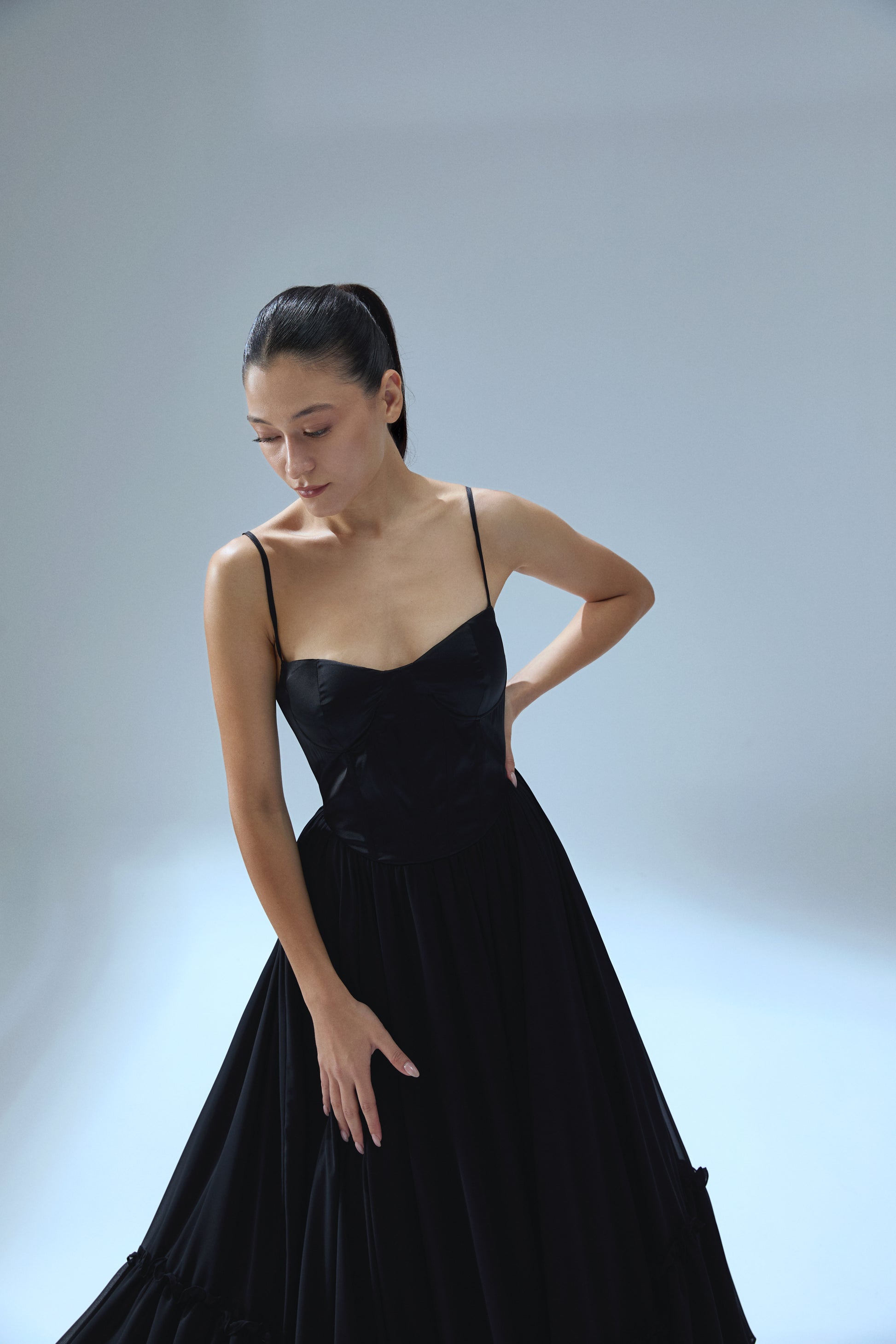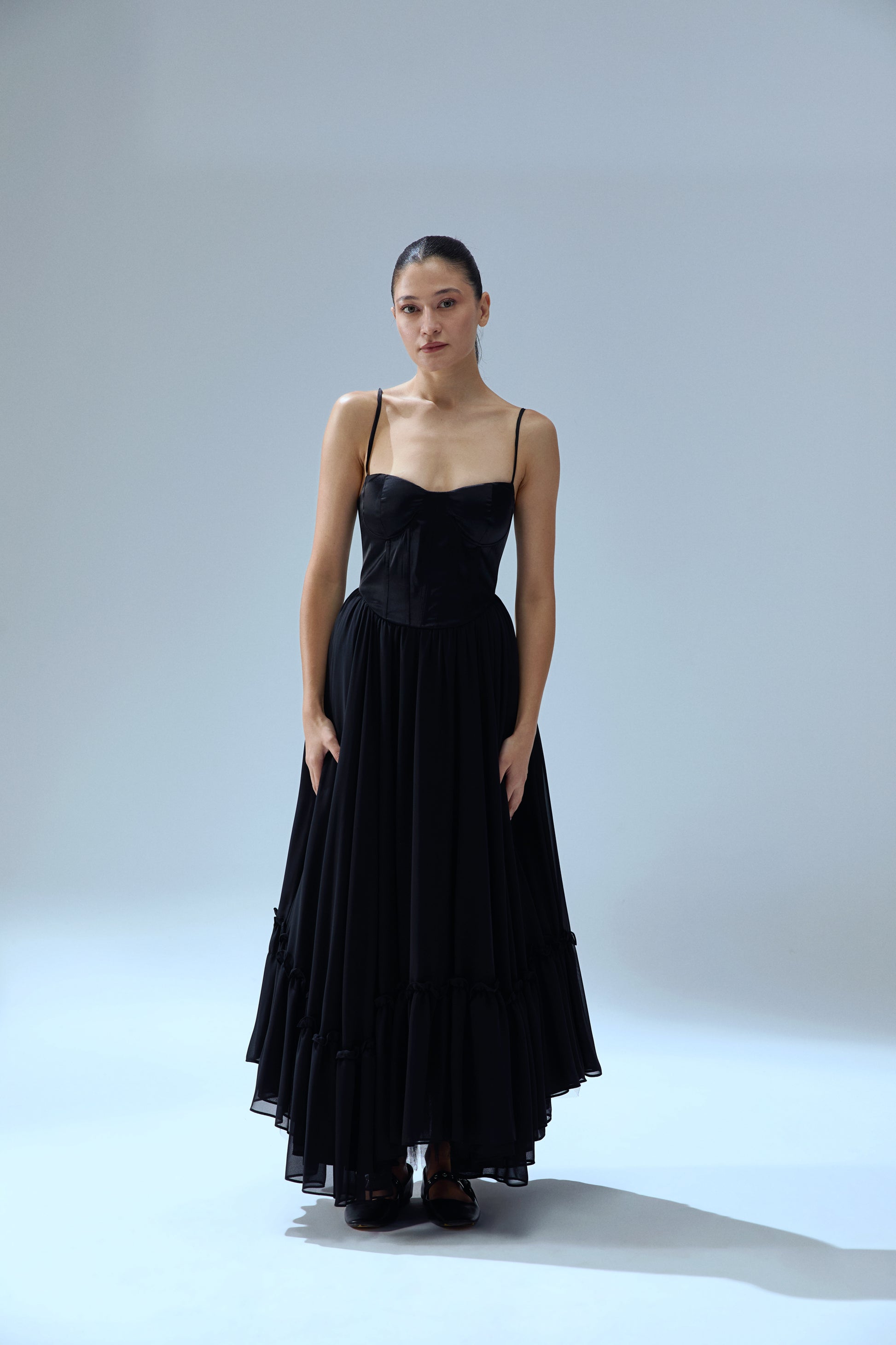 ADJUSTABLE STRAP, RUFFLED HEM, TULLE AND FLUFFY DRESS