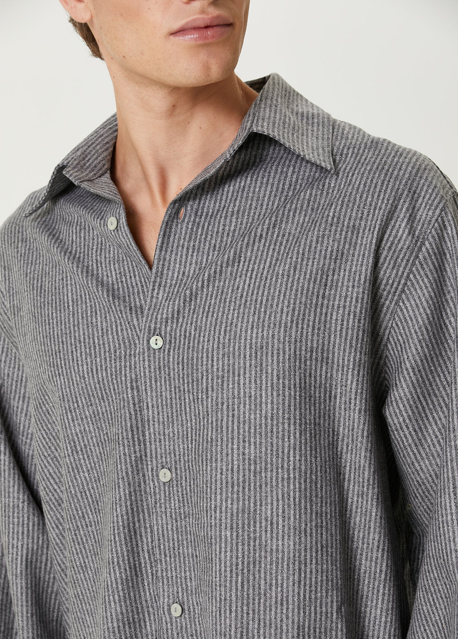 WOOL & CASHMERE BLEND YOUR *ITCH SRTIPED LONG SLEEVE SHIRT - GRAY STRIPED