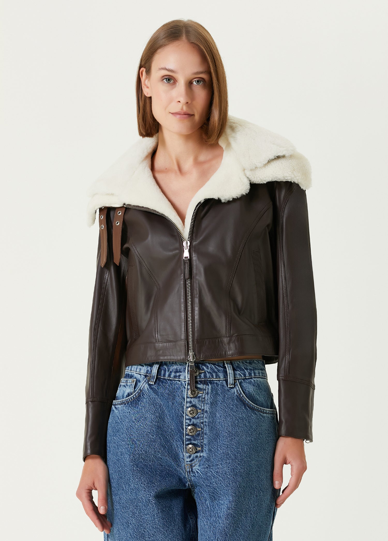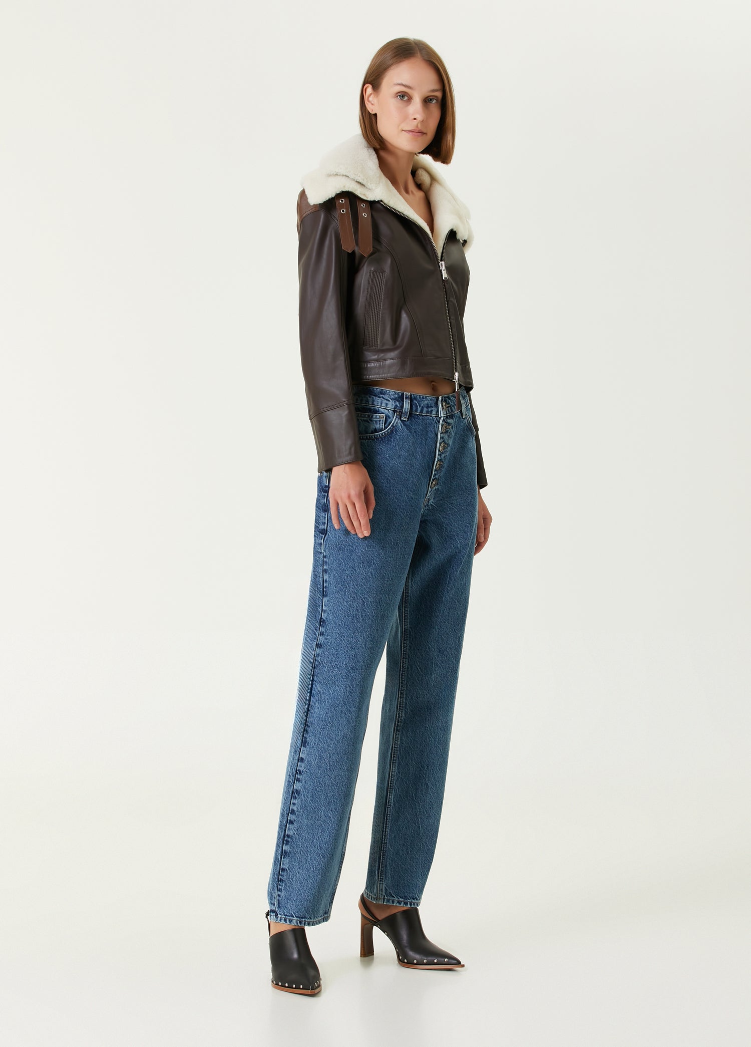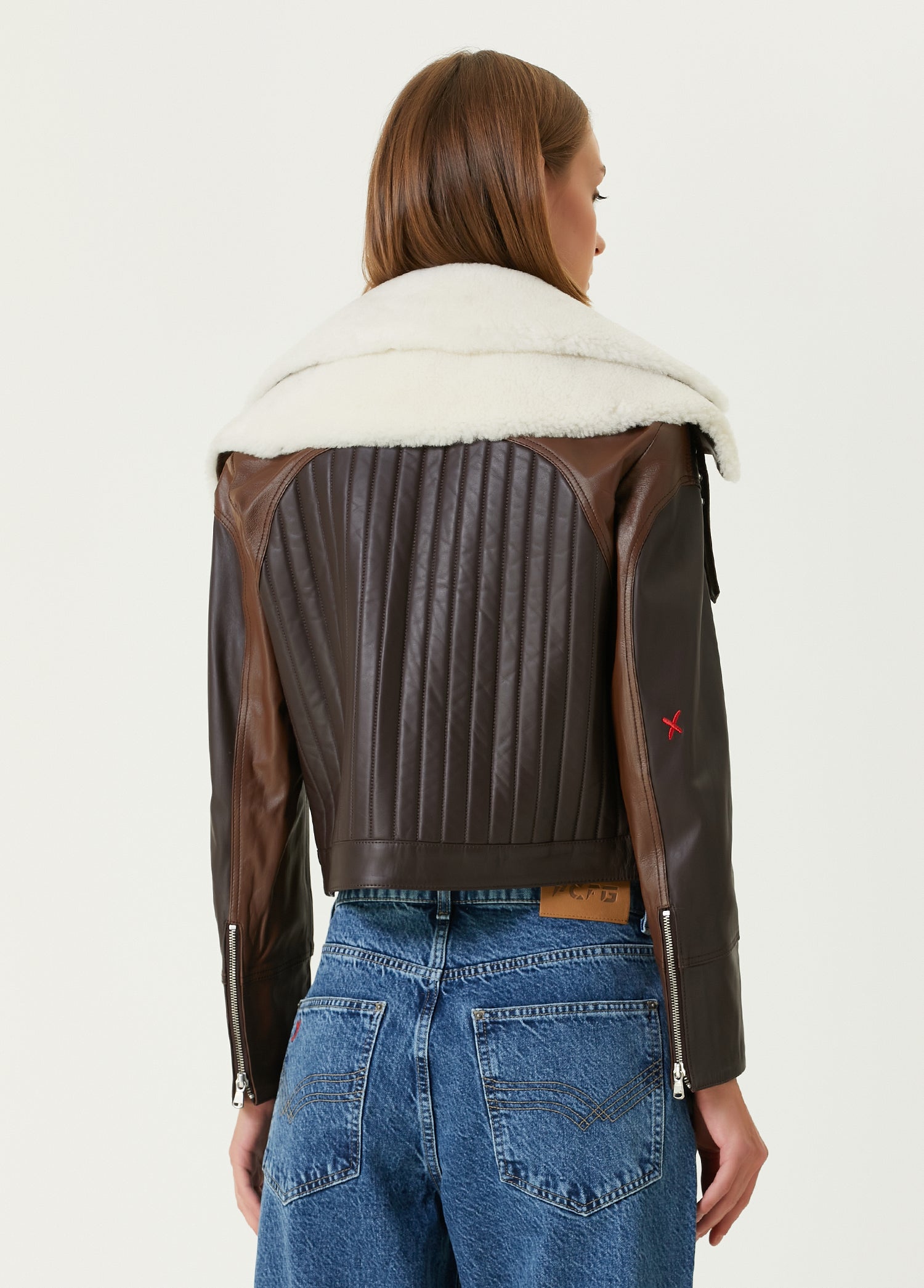 Yüksek kaliteli deriden üretilen model, görünümüne sofistike bir hava katan özgün çift yaka tasarımıyla öne çıkar.