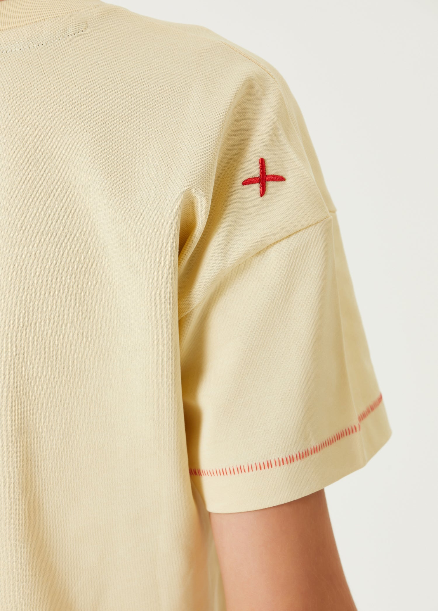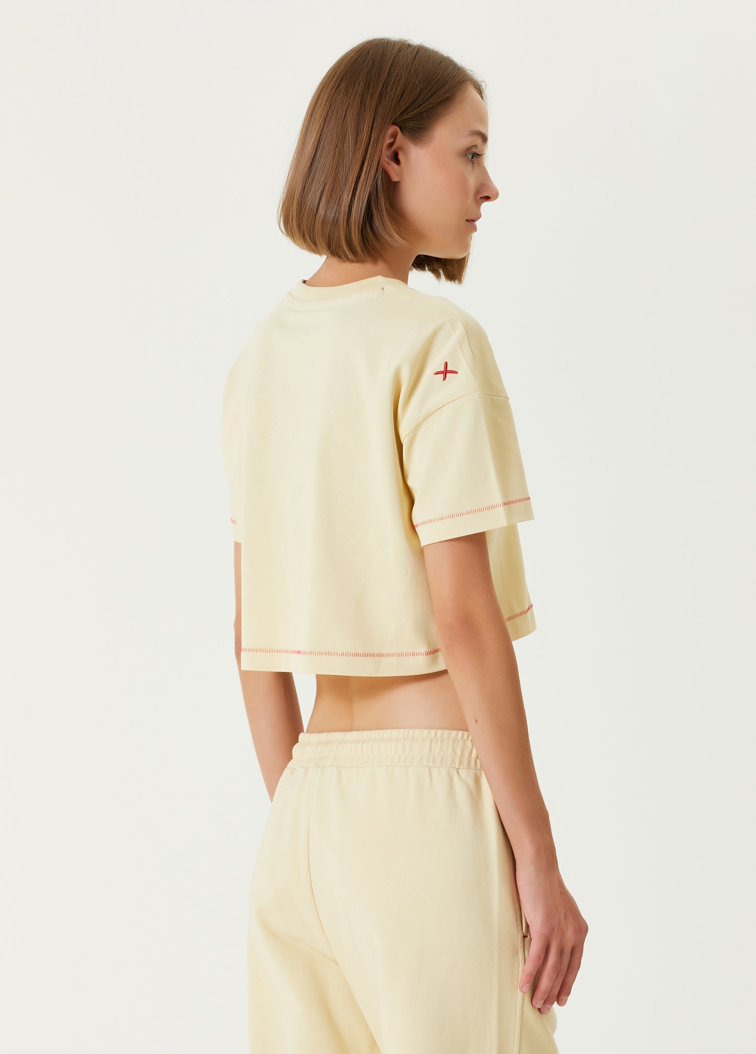 Bu kadın crop tişört, sade ama iddialı tarzıyla günlük görünümüne karakter katar ve özgün stilini vurgular.