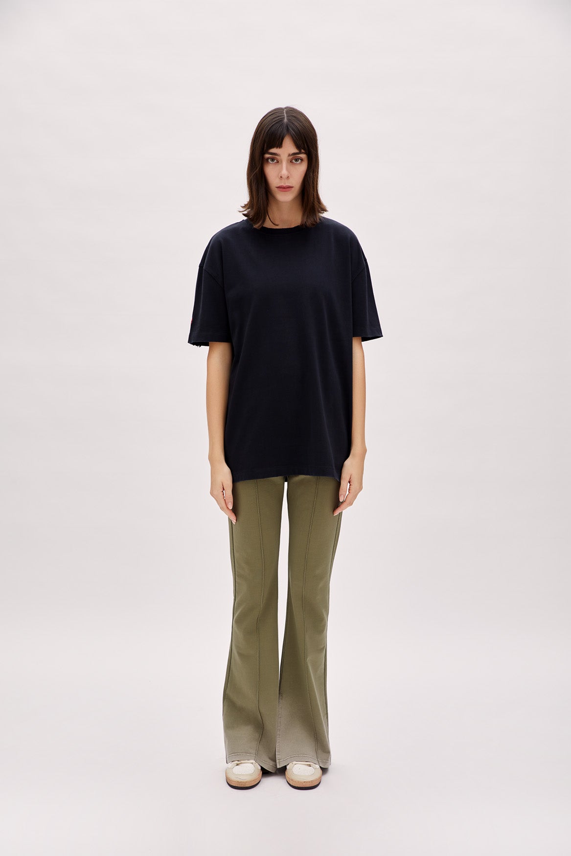 Bu yırtık detaylı logolu tişört, konforu ve özgün stili birleştirerek gardırobuna karakter kazandırır.