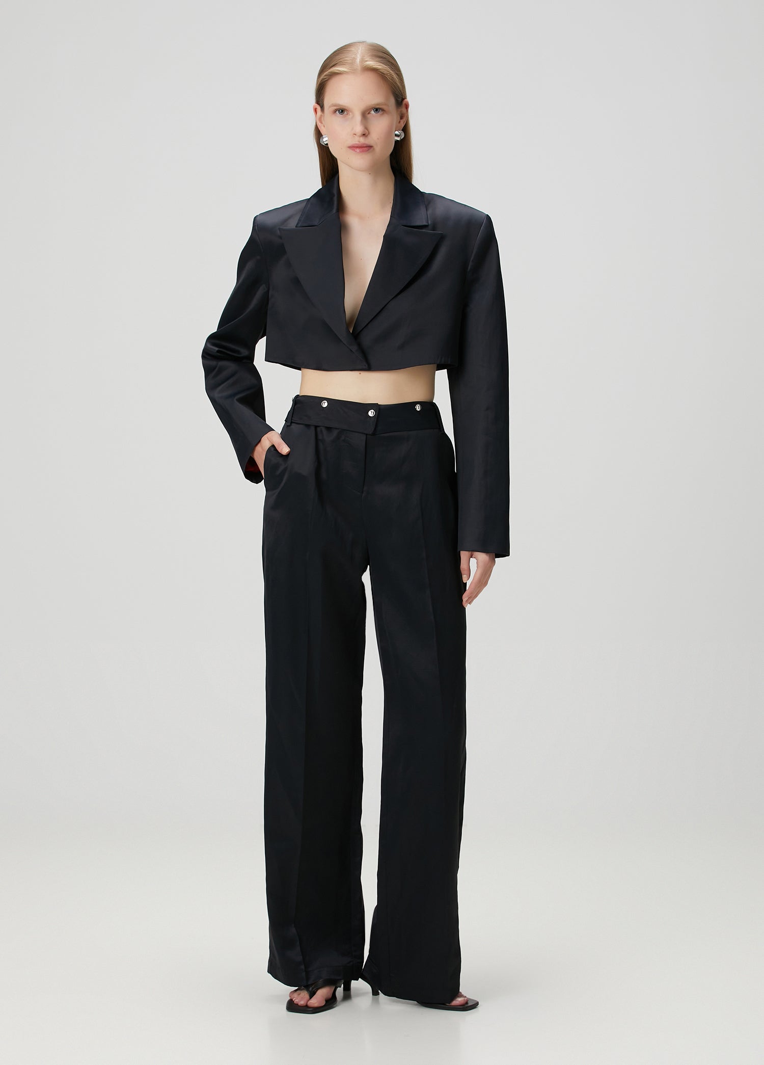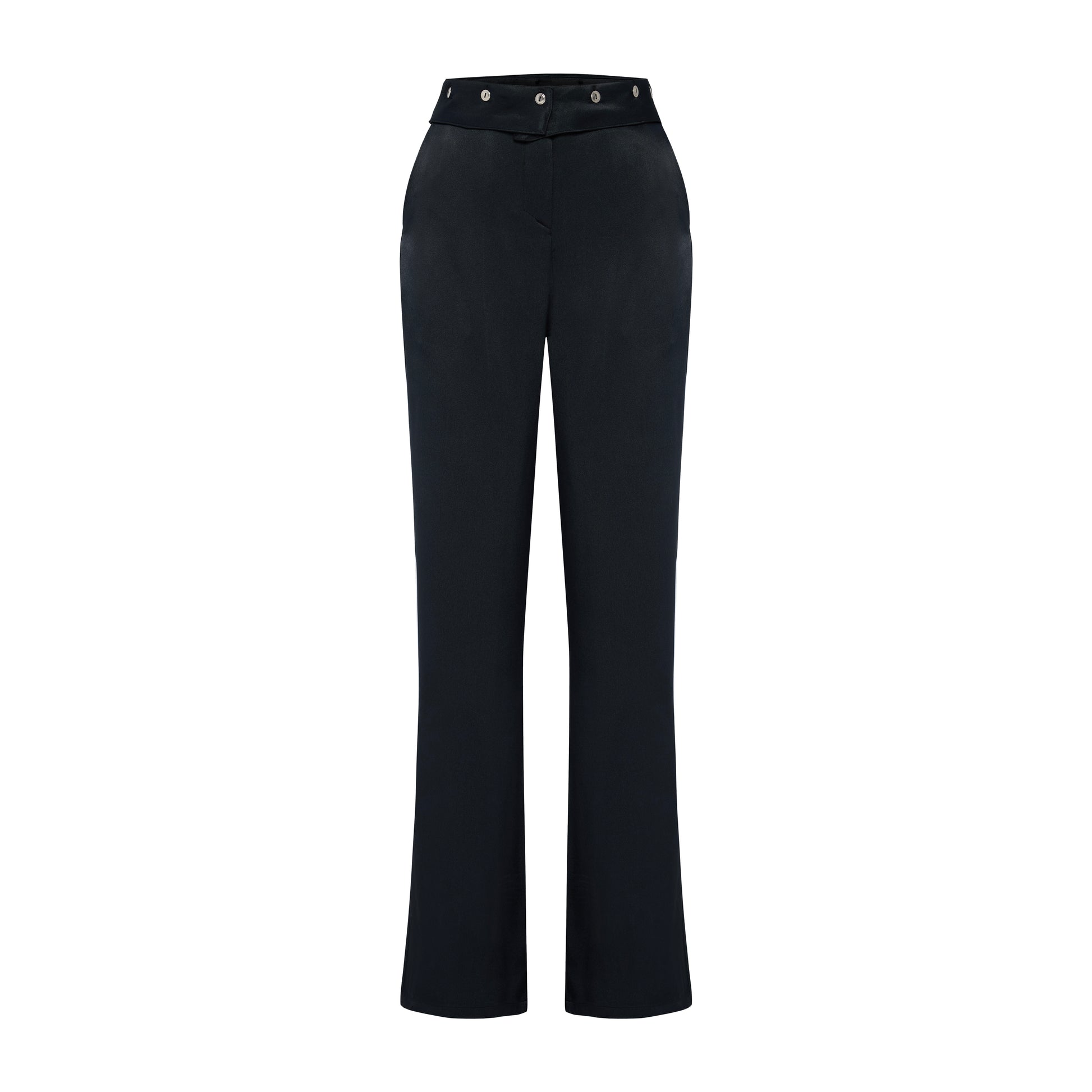 Bu pantolonlar, modern ve sofistike bir hava katan zarif metal düğme detaylarıyla dikkat çeker. Yüksek kaliteli kumaştan üretilen tasarım, kusursuz bir duruş ve özenli bir kesim sunar. Metal düğmelerin şık dokunuşu, pantolonu hem resmi hem de smart-casual kombinler için ideal bir parça haline getirir.