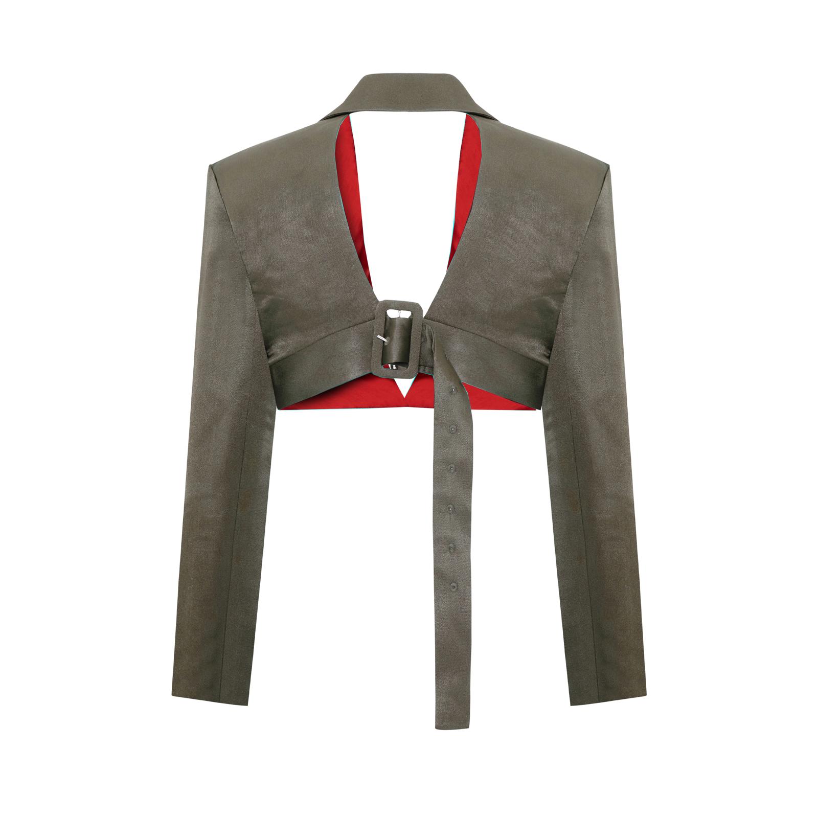 Parlak yüzeye sahip bu kısa ceket, modern ve dikkat çekici yansıtıcı dokusu ile öne çıkar. Trend kesimli crop formu ve beli sıkıca saran şık kemer detayı sayesinde her kombine hem modern bir hava hem de zarif, vücuda oturan bir görünüm kazandırır.