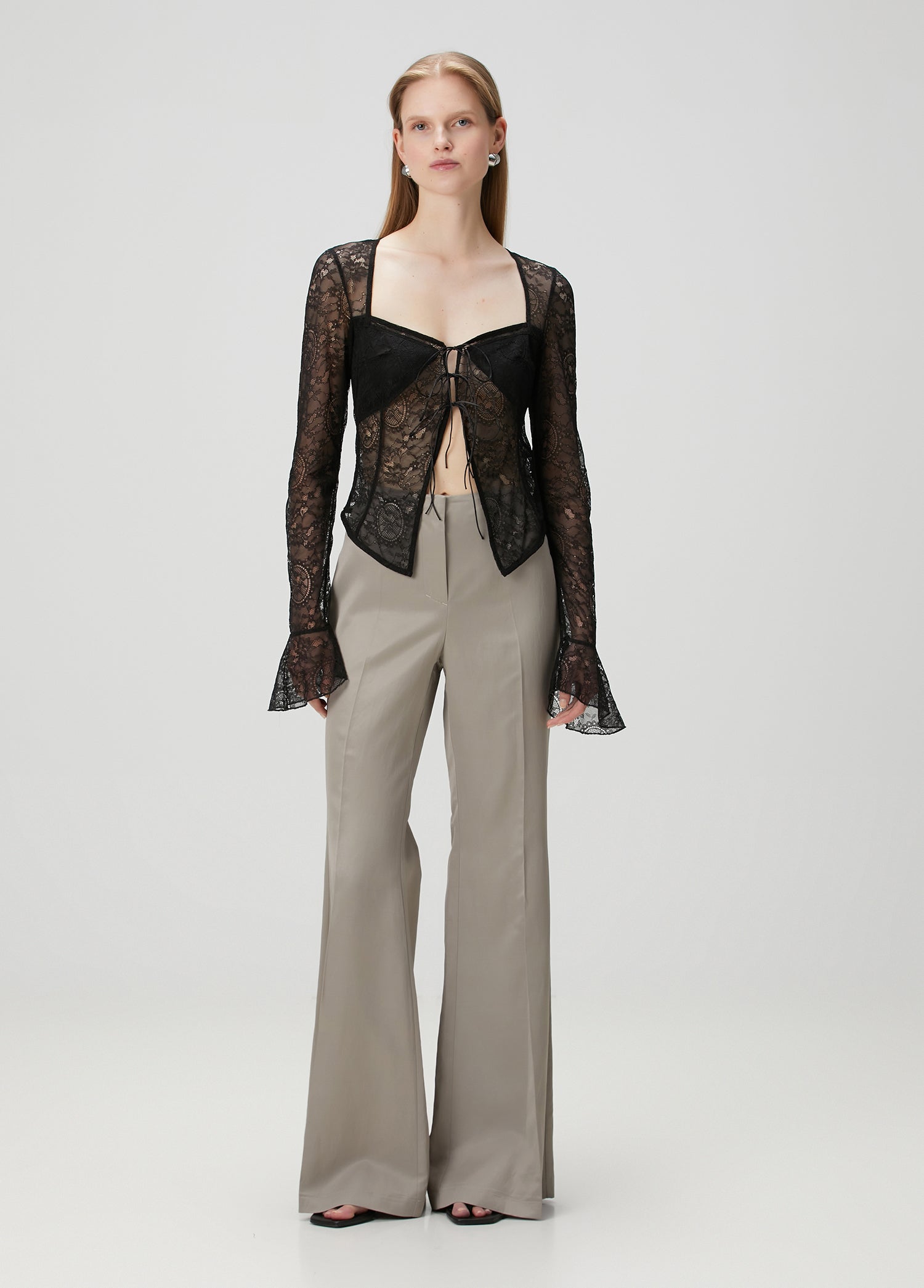 Bu pantolonlar, dizden paçaya doğru genişleyen özgün kesimiyle dikkat çeken bir flare tasarıma sahiptir. Retro esintili bu silüet, kombinlere hem hareket hem de dramatik bir hava katar. Rahat ve yüksek kaliteli kumaştan üretilen pantolon, hem günlük hem de daha şık görünümler için stil sahibi ve vücuda hoş oturan bir duruş sunar.