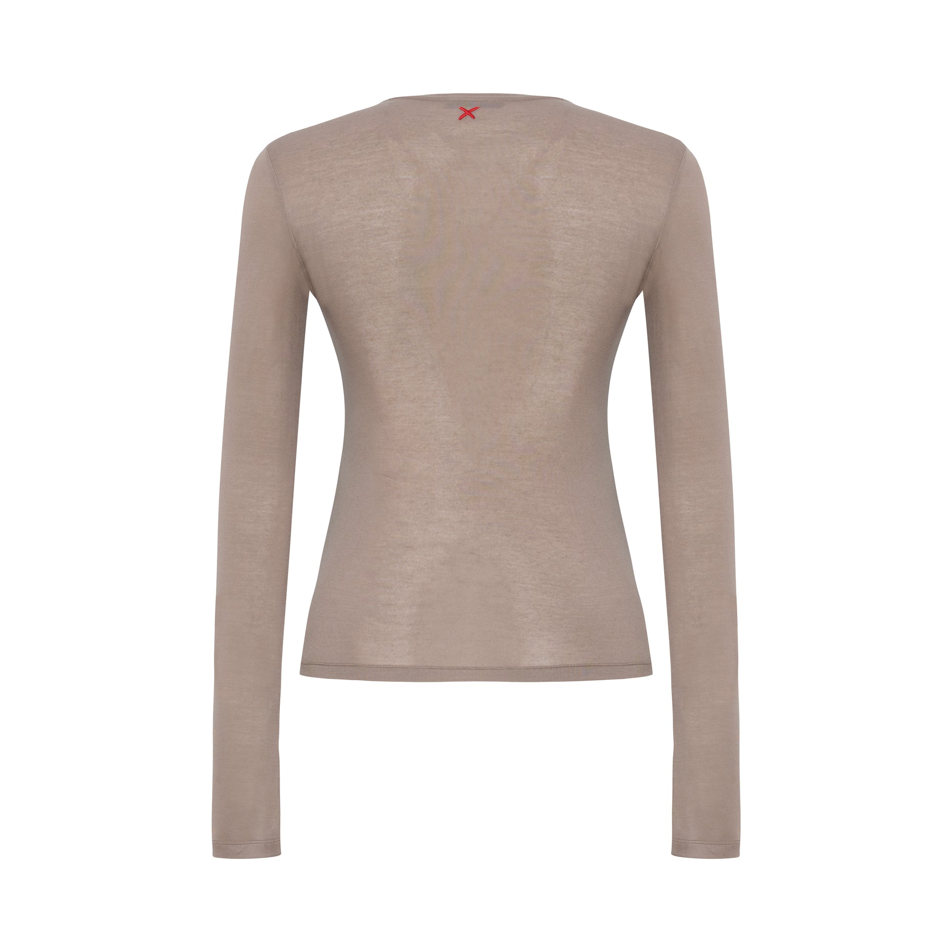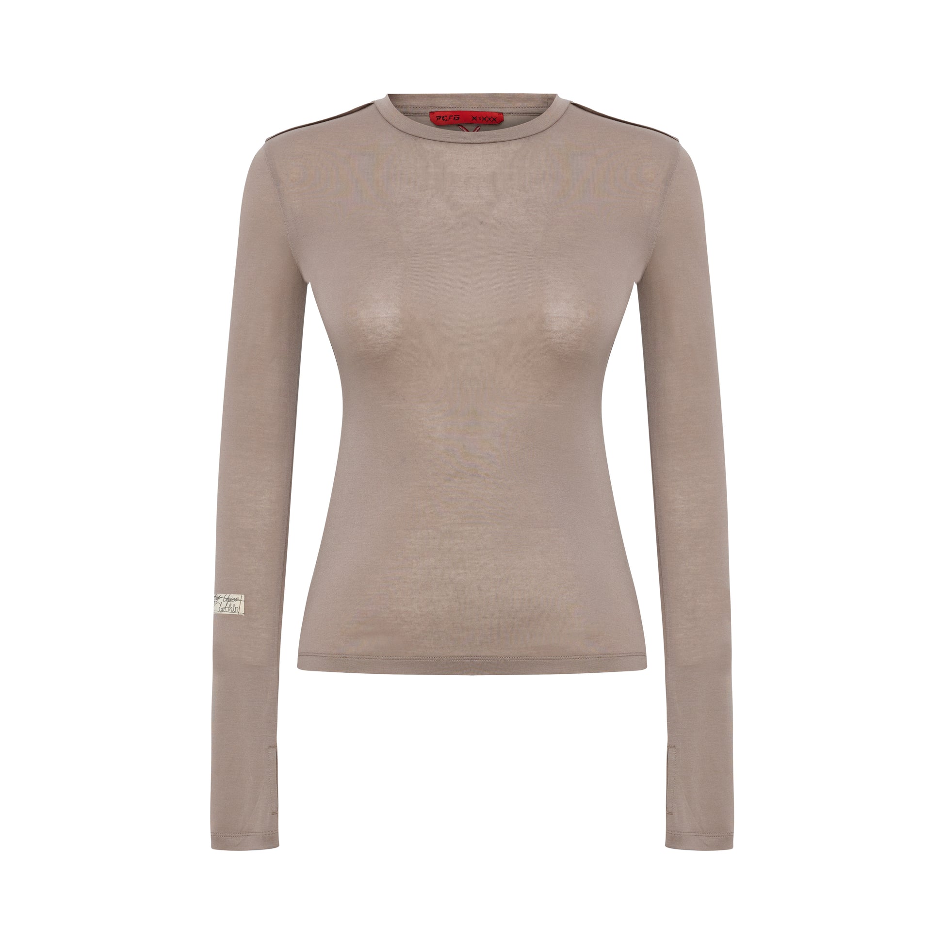 Bu transparan uzun kollu üst, hafif ve zarif bir hava katan yarı saydam kumaşıyla dikkat çeker. Uzun kollar, tasarımın sofistike duruşunu güçlendirirken, ince ve hafif materyal akıcı bir görünüm sunar. Bir atlet ya da bralet üzerine katmanlamaya uygun olan bu üst, modern çekiciliği rafine ve stil sahibi bir görünümle bir araya getirir.