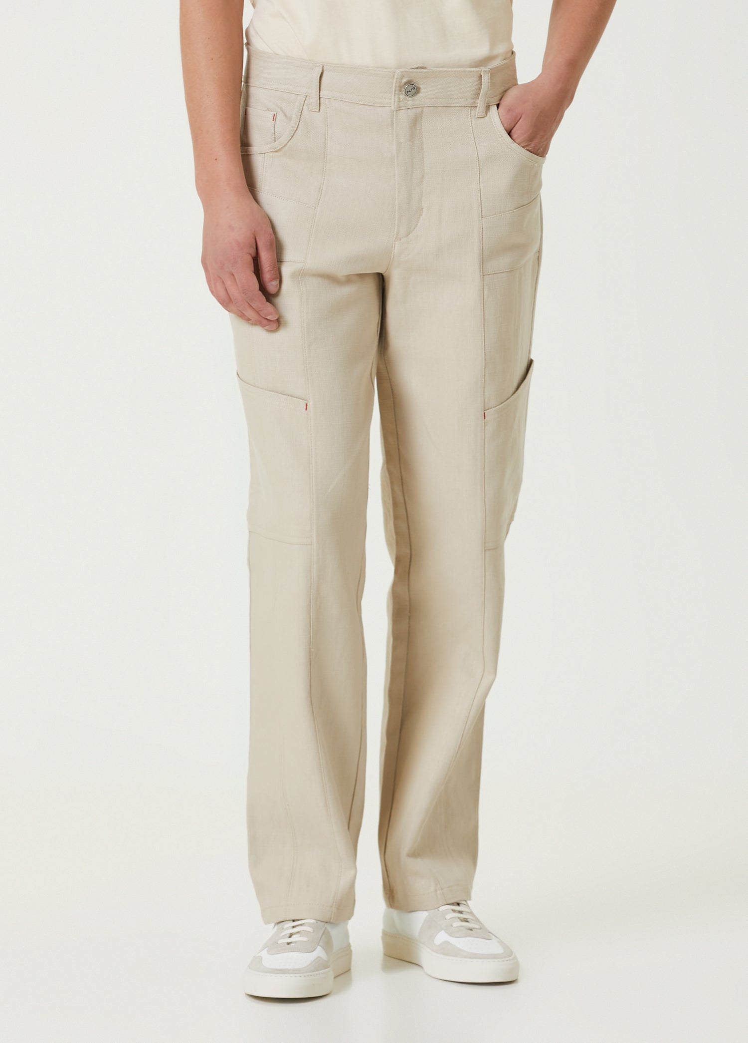 Bu pantolon, stilden ödün vermeden pratiklik sunan çoklu ceplere sahiptir.