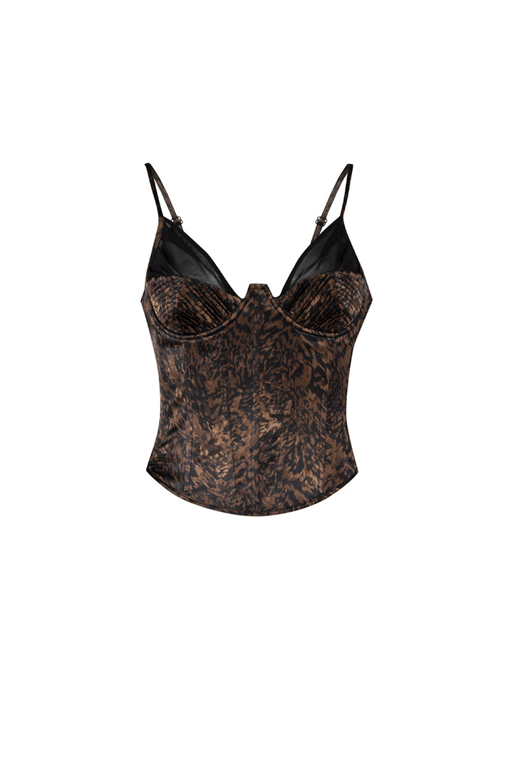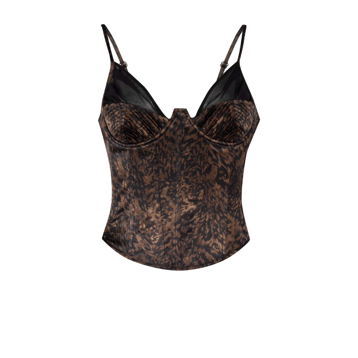 Your *itch Leopar Desenli Korse Üst, güçlü desenini korse formunun toparlayıcı etkisiyle buluşturarak görünümüne cesur, dinamik ve belirgin bir çizgi ekler. Gövdeyi saran yapı, silueti doğal bir şekilde ortaya çıkarırken; leoparın ritmik deseni üstte kendiliğinden bir hareket yaratır. Sade parçalarla tamamlandığında bile kolayca öne çıkan bu tasarım, şehir stiline özgüvenli ve enerjik bir dokunuş taşır. Hareket ettikçe değişen ışık oyunları, üstün etkisini daha da belirgin hâle getirir.