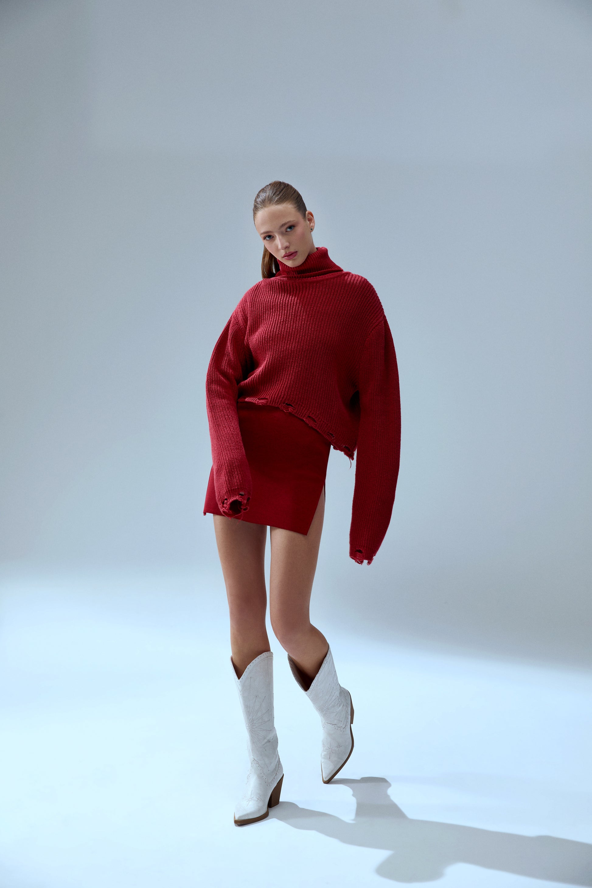 Your *itch Yırtık Görünümlü Yüksek Yaka Triko Kazak